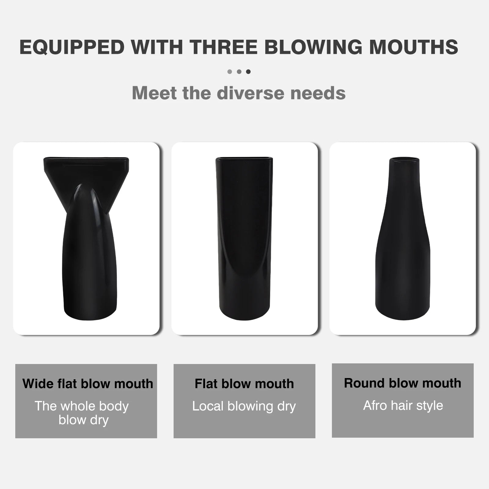 * Long-narrow nozzle produces gentle wind which is a good choice for drying the sensitive areas, such as the neck and tummy.