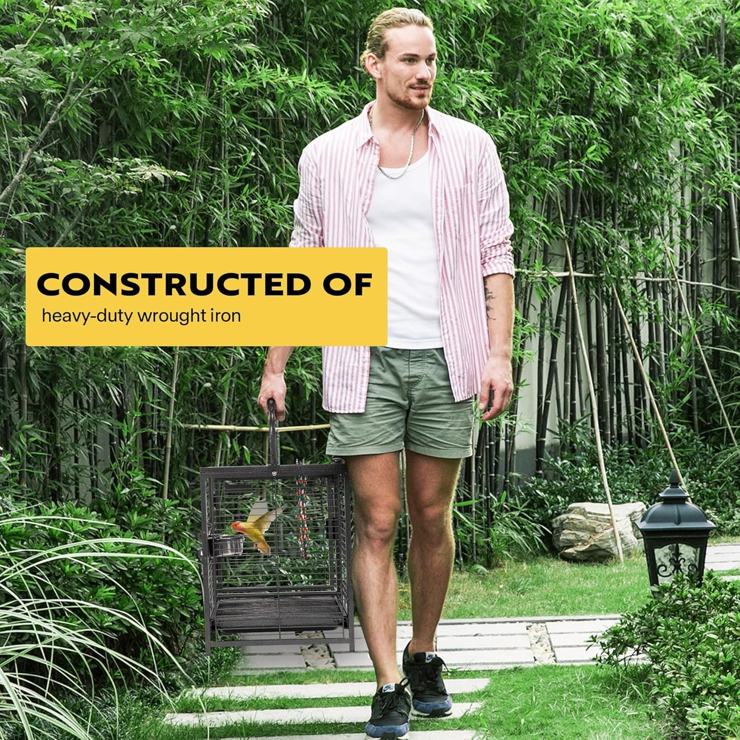 VIVOHOME 19 Inch Wrought Iron Bird Travel Carrier Cage
