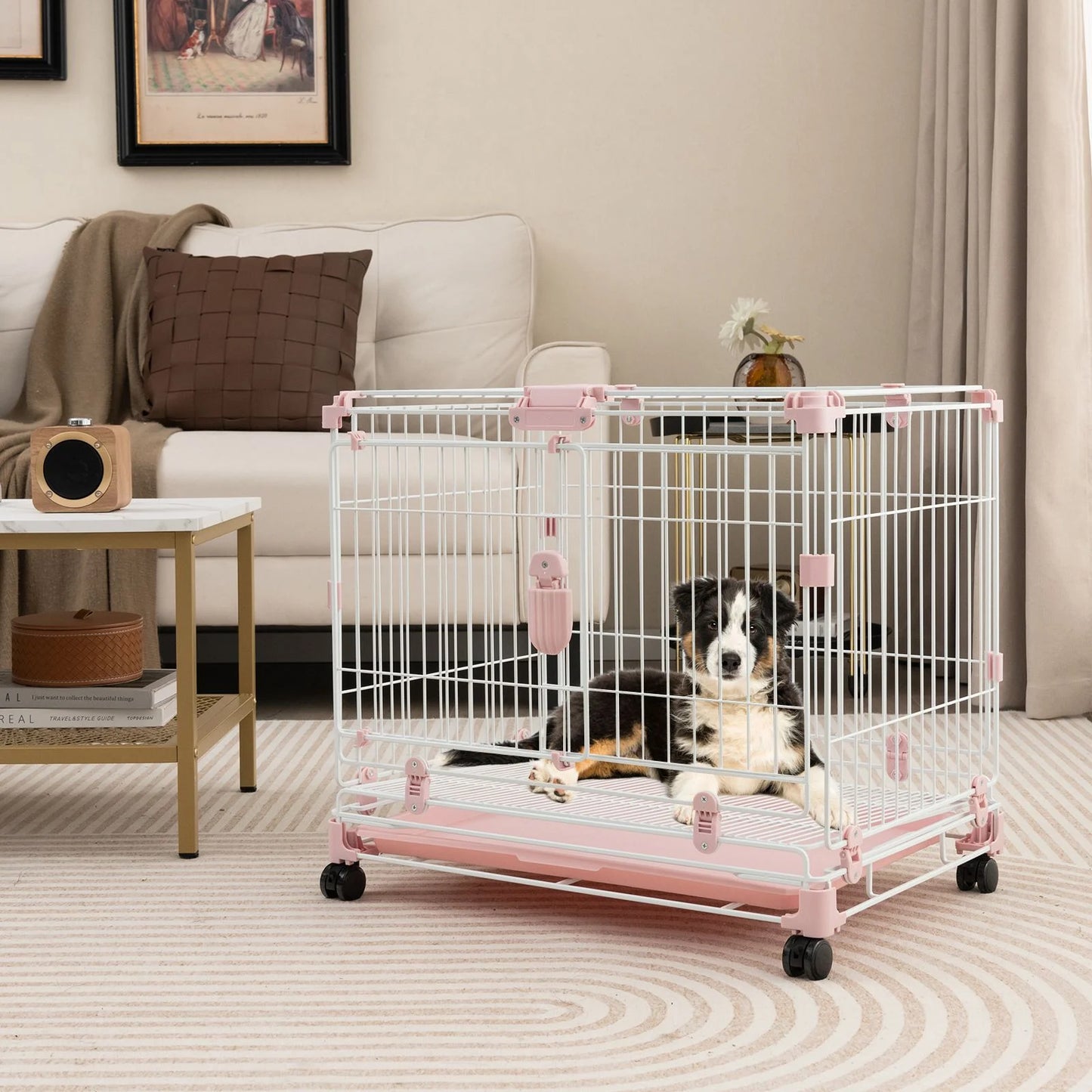 Folding Dog Kennel with Double Lockable Door and Wheels