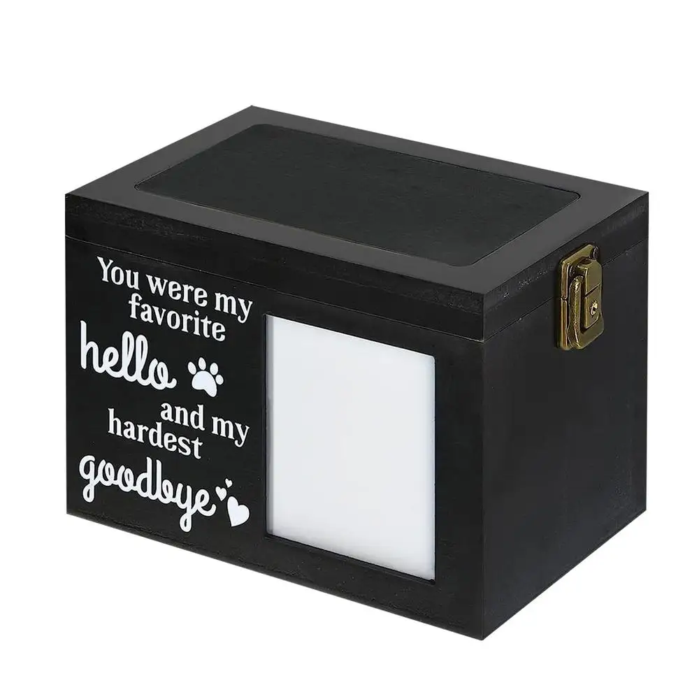 2.Emotional Pet Remembrance: The front of this ashes box is engraved with the words "You were my favorite hello and hardest goodbye", perfect for commemorating your beloved pet's life. Ideal condolence gift for friends grieving the loss of a pet.